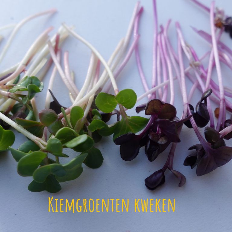 Ze zijn binnen één à twee weken oogstbaar. Alfalfa, tuinkers en taugé zijn bekende soorten. Zonnebloemkiemgroenten zijn mijn persoonlijke favoriet.